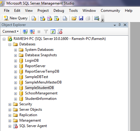 Let's create a database and tables. Here, I have created a database and named it as "SampleStudentDB".