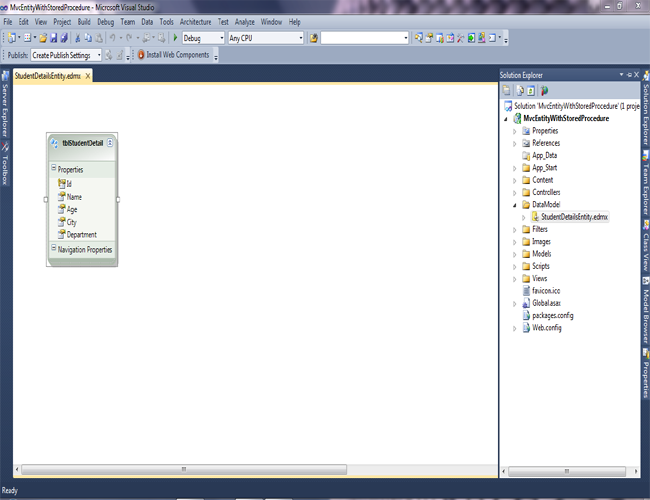 Let's create a simple ASP MVC Project. Here, I have created my project and named it as "MvcEntityWithStoredProcedure".