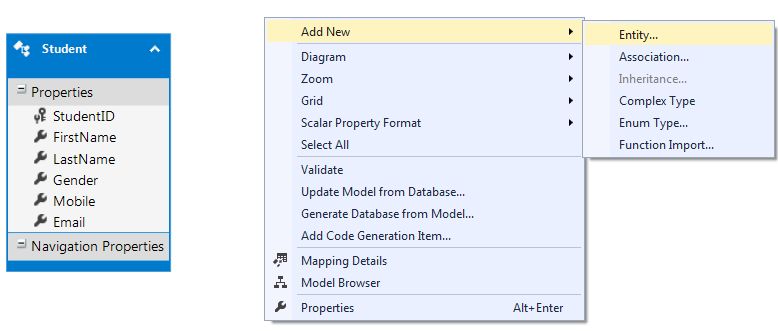 - Now right click on StudentContactsDetails entity and click on mapping.