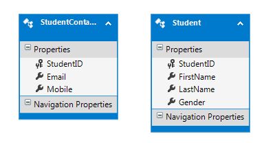 Now in this entity we have Mobile and email properties, these properties we are not using everywhere like Firstname , Lastname, Gender properties. If we will load Student entity these all entity will load automatically, So now we will create 2 entities (Student ) & (StudentContactDetails).
