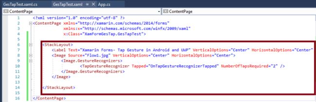 In GesTapTest.Xaml, add Label and Image Control with Tap Gesture code.
