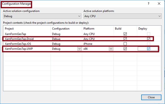 Uncheck the build and deploy options to iOS. Check Droid and UWP.