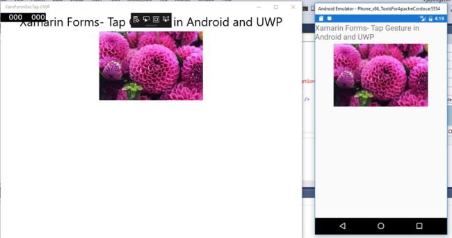 Deploy your app Android Emulator and Local Machine (UWP). The output of XamFormGesTap app is given below.