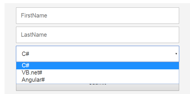 - <form class="container"> <input type="text" name="firstname" placeholder="FirstName"><br> <input type="text" name="lastname" placeholder="LastName"> <br> <select name="programming">