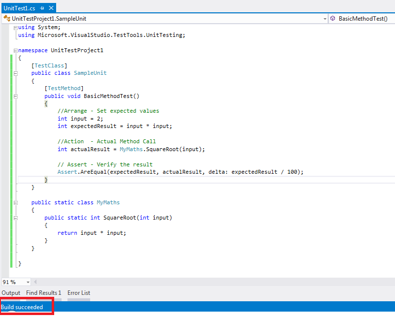 Class, Method implemented and Test verified, No Error Build Succeeded,