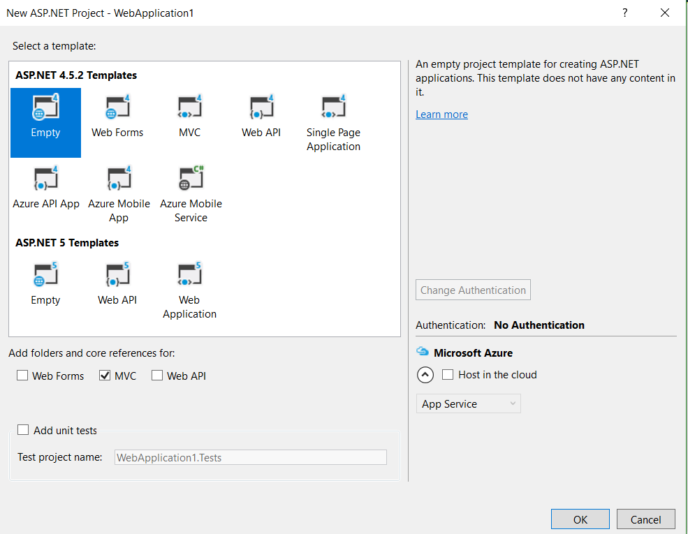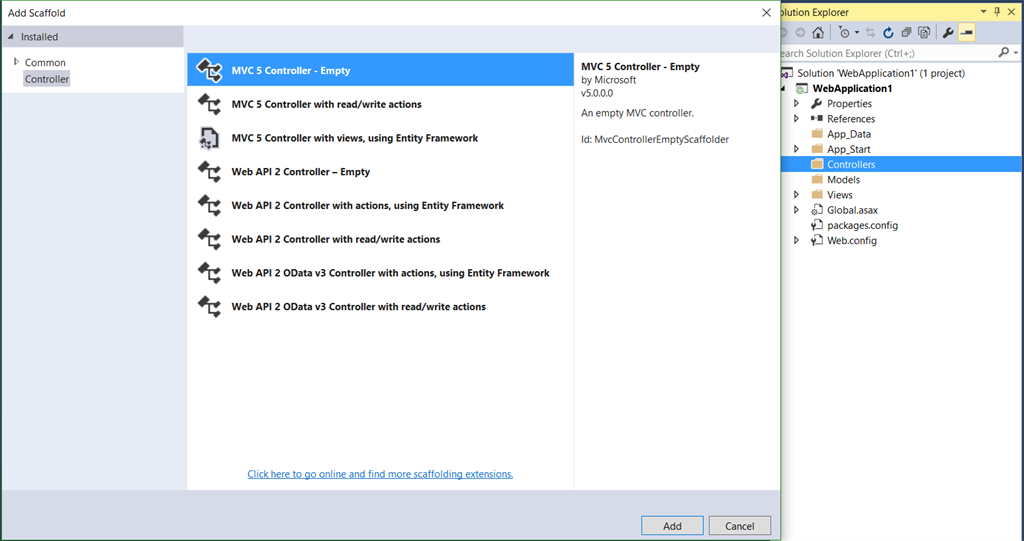 After creating an empty project, create an empty controller under controller folder by right clicking controller folder.
