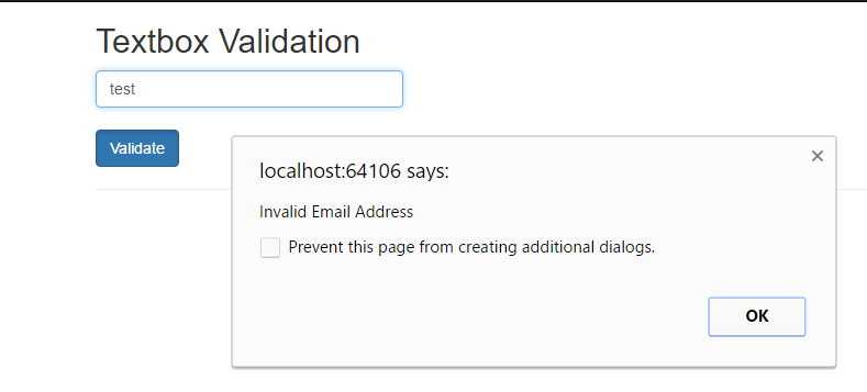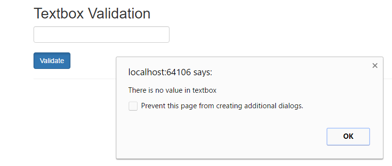 Now, run the Application and leave textbox as empty and click Validate button. Now, you will see the screen given below.