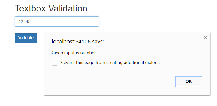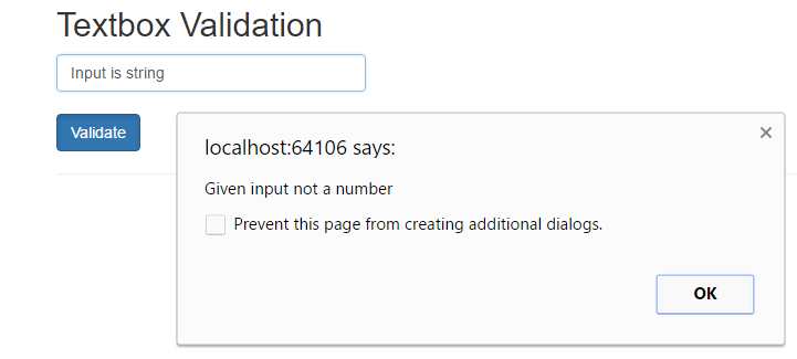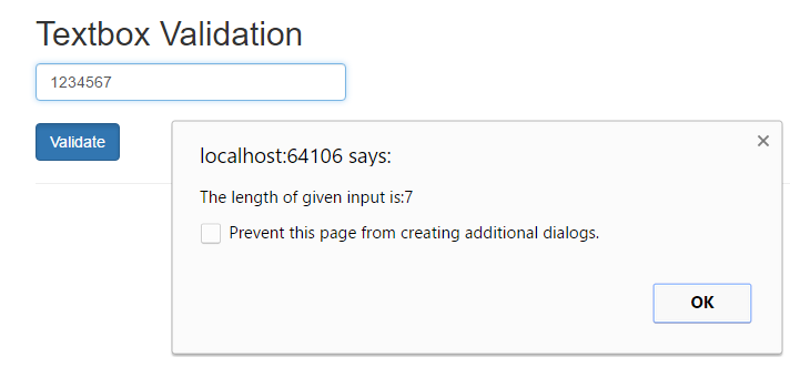 Now, run your Application and give some input in textbox. Click Validate button to get the length of textbox input.