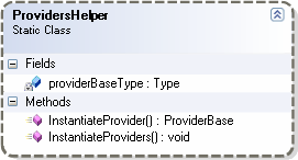 There is a ProvidersHelper in the System.Web.Configuration namespace, but because this is a windows app, I re-wrote this utility class specifically for windows applications using reflection so we wouldn't need to pull in the entire web namespace just for the one class. ProvidersHelper is used to instantiate the concrete providers and set values defined in the configuration file. If you want to implement the Provider pattern in a web application, use System.Web.Configuration.ProvidersHelper instead (it has the same interface so it is easy to swap out).