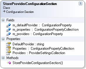 There is also a StoreProviderConfigurationSection which inherits from System.Configuration.ConfigurationSection This is used to retrieve data about the Providers and default provider from the configuration file.