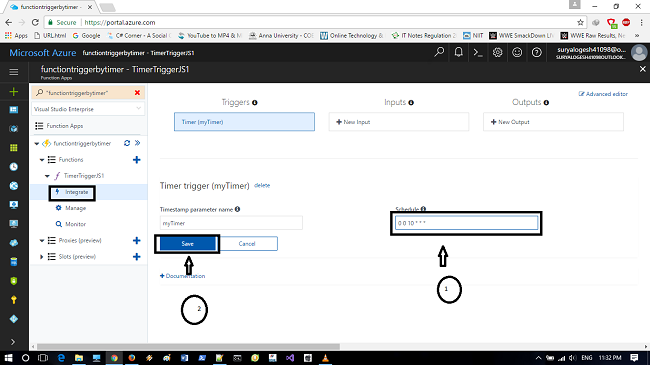 Now, we can change or update the function time scheduling by expanding the function. Click "Integrate" and we can change the input and output of the schedule.
