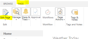 To edit the newly created page, use "Edit Page" in the top ribbon, as shown below.
