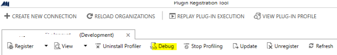 Go to Plugin Registration Tool, click Debug icon, as shown below