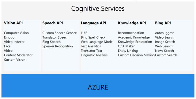 Microsoft Cognitive Services is the most comprehensive and advanced cloud based API to build intelligent applications. Microsoft Cognitive Services is a set of 29 different APIs that provides functionality to implement computer vision, speech recognition and translation, natural language processing, knowledge and recommendation, and intelligent search.