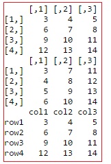 - P <- matrix(c(3:14), nrow = 4, byrow = TRUE, dimnames = list(rownames, colnames))