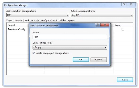 Step 3: Enter the environment name for which you want to add the configuration and click on OK. So here I am adding the Perf environment configuration.