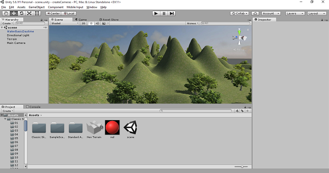 First, you have to open the Unity project. Create the terrain, trees, and water for your game.