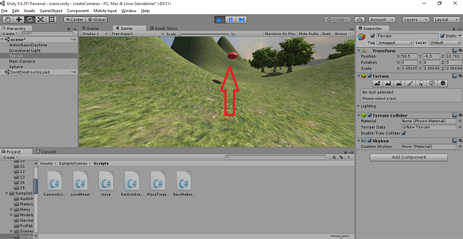 Save the program. Go to Unity and click on the Play button. The sphere will move upward.