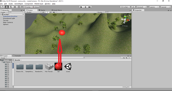 Drag and drop the red material. The color of the sphere will be changed into red.