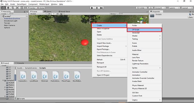 Click on the "GameObject" menu in the menu bar. Select 3D objects and pick the "sphere" option. The sphere will be added to the scene View.
