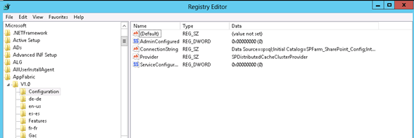- HKEY_LOCAL_MACHINE >> SOFTWARE >> MICROSOFT >> AppFabric >> V1.0 >> CONFIGURATION