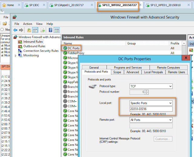 Note: If the firewall has been opened of above ports, use PowerShell using Distributed Cache Commandlets, the DC ports will be opened automatically. - ICMPv4 and ICMPv6 have to be opened for DC to function properly.