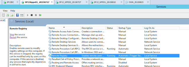 Step 2: Start the Remote services on each server as shown: