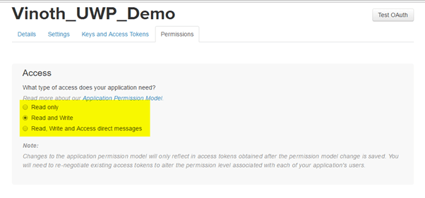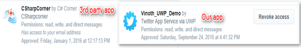 Go to -> https://twitter.com/settings/applications , permission has given to the Csharpcorner.