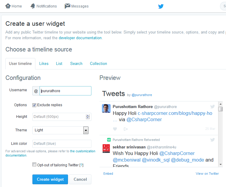 Here is a simple code to get a Twitter widget. Firstly, all we need to get is the Twitter widget id.