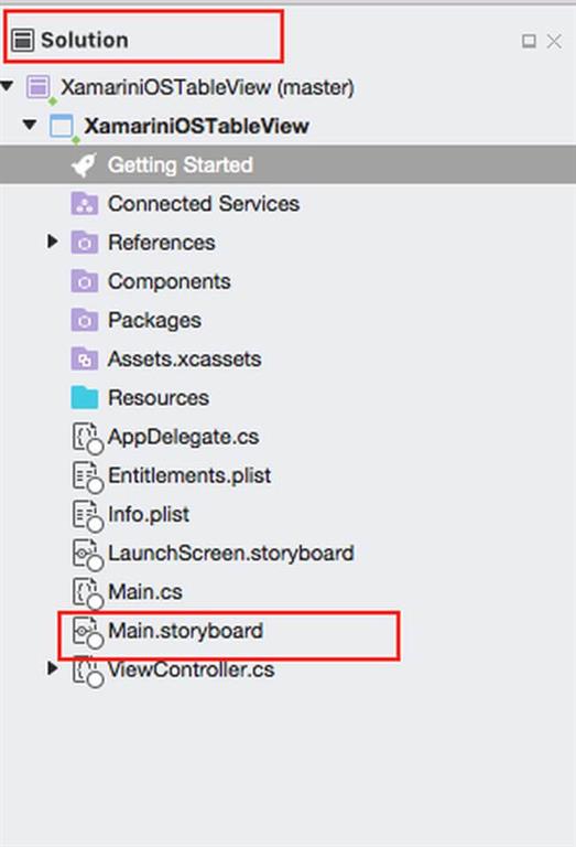 Subsequently, go to the solution. In the solution, get all the files and sources in your project. Now, select Main.storyboard and double click to open Main.storyboard page.