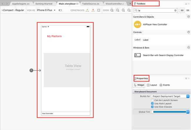 In this step, design your app using Storyboard, Toolbox, and Properties.