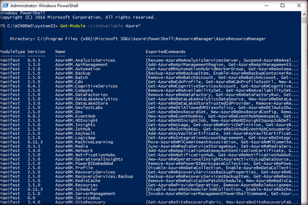 To test Azure PowerShell installation, run the command given below, which will list Azure modules available.