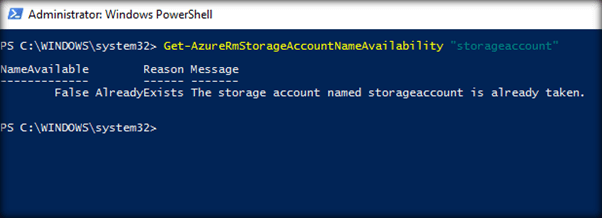 Get-AzureRmStorageAccountNameAvailability "storageaccount"