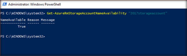 Get-AzureRmStorageAccountNameAvailability "2017storageaccount"