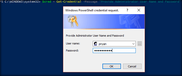 Now, update the configuration object with the computer name and credentials that will be used for administrative purposes (which we had earlier accepted from the user).