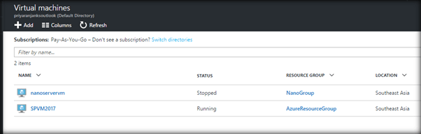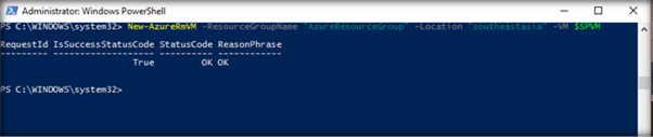 New-AzureRmVM -ResourceGroupName "AzureResourceGroup" -Location "southeastasia" -VM $SPVM