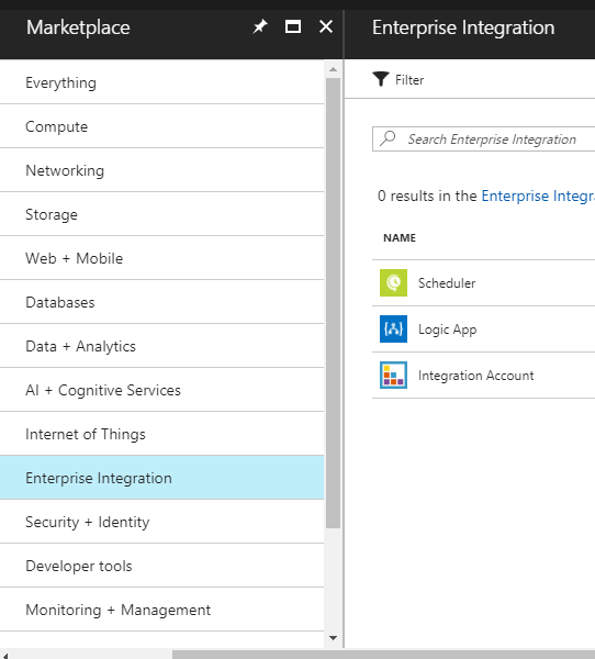 - Open Azure portal and click on the "Add" button. Choose Scheduler under "Enterprise Integration" category and then, click on "Create".