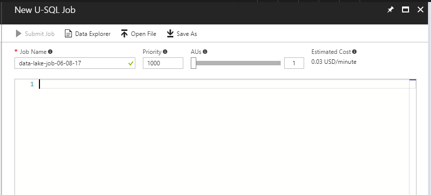 - From the Data Lake Analytics account, click "New Job".
