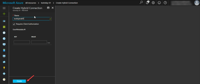 - On click Create button will create a new Hybrid Connection Relay under the Relay Namespace.