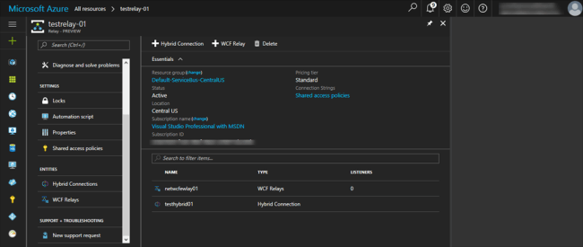 Relay Namespace will have a list of newly created WCF Rely and Hybrid Connection.