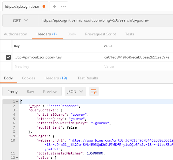 Responses from the Bing Search API rank page results, including news, dictionary, computation, and time. Safe search levels are customizable for your users, keeping them from adult content if required. Finally, the API returns spelling suggestions for misspelled queries, and lists of related searches.