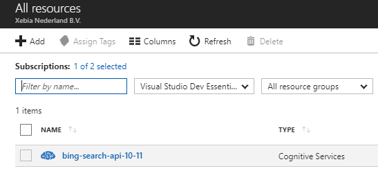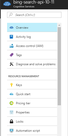 - Go to “All resources” section and see the newly created “Bing Search API” named as “bing -search-api-10-10”.