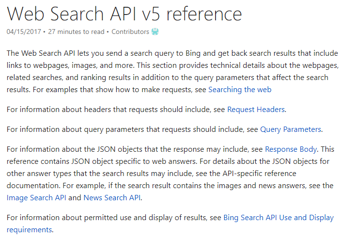 - Then, go to “Make an API call” and click on the Bing Web Search API reference.