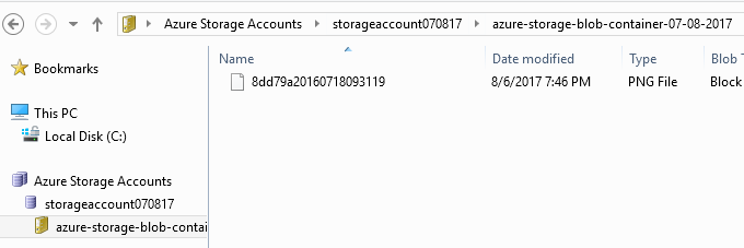 - Then, you will see the new storage account, shown there in Azure Explorer.