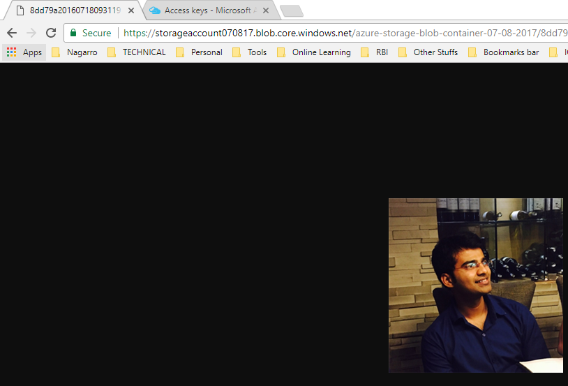 - Now, copy the path of the image and paste it into the browser. When we see the image, we see that the URL is a storage account URL.