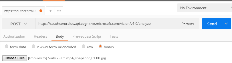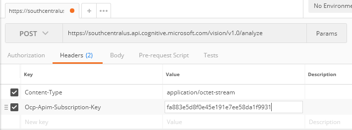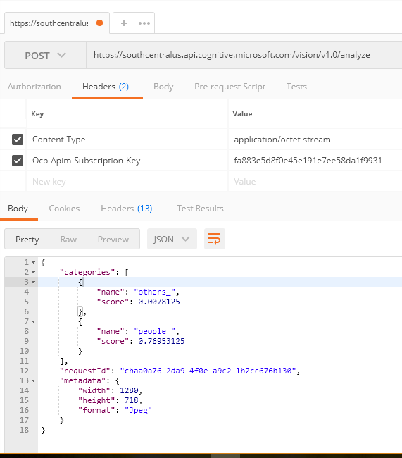 - Put the Content-type and Ocp-Apim-Subscription-Key’s value into the headers.