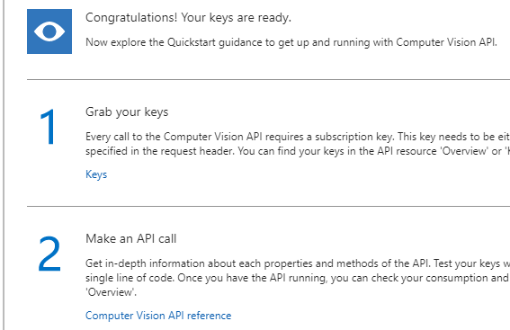 - In the opened section of the Computer Vision API, click on the “quick start option”.