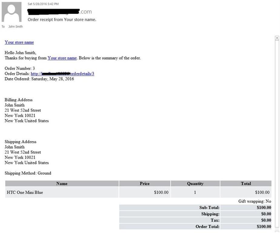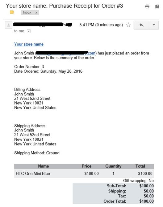 - Store admin will receive an email with a notification that somebody placed an order on the site