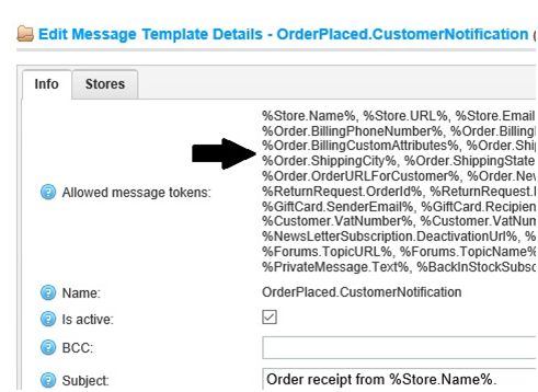 Message tokens are simple variables saved in the nopCommerce site that can be used in message templates and these variables are replaced dynamically right before an email is sent out. There is one important point there that store owner should keep in mind, which is that not all variables (tokens) are always replaced.