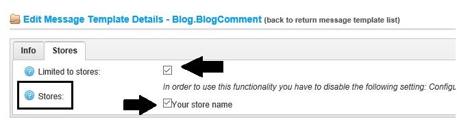 - Click on the 2nd tab “Stores” on Edit message template details page